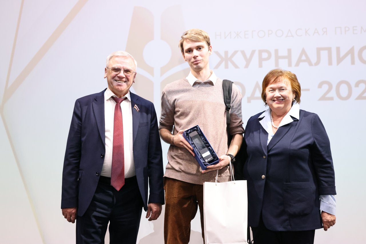 В номинации от Губернатора Нижегородской области отмечена профессиональная работа корреспондента службы новостей «АИФ в Нижнем Новгороде», студента кафедры журналистики ИФИЖ Андрея Рухлина.